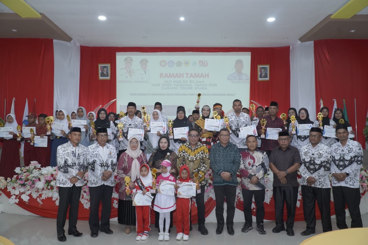 Hal tersebut diharapkan Wali Kota Tidore Kepulauan Muhammad Sinen saat menghadiri sekaligus memberikan sambutan pada acara Ramah Tamah dalam rangka HUT ke 80 PGRI dan Hari Guru Nasional Tahun 2025 yang diselenggarakan oleh PGRI Cabang Tidore Utara di Aula BPMP Provinsi Maluku Utara, Kelurahan Rum, Minggu (30/11/2025).
