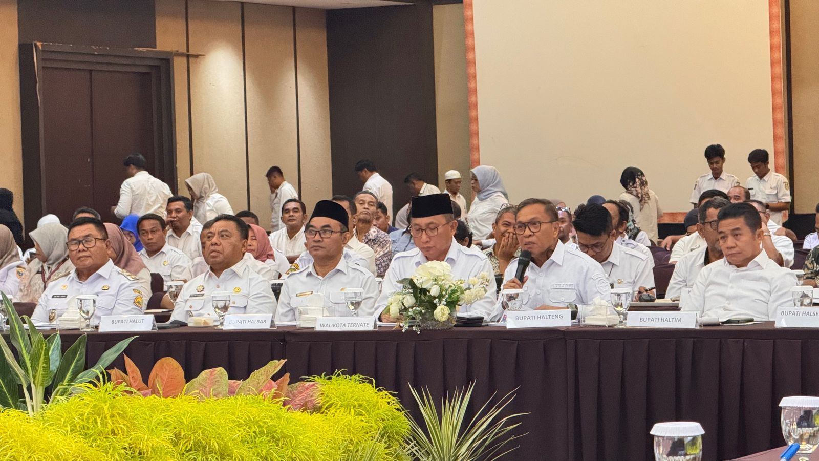 Ternate- Forum Kepala Daerah se-Provinsi Maluku Utara dalam rangka koordinasi dan evaluasi penyelenggaraan pemerintahan daerah digelar di Kota Ternate, Rabu (17/12/2025). Kegiatan ini dihadiri Gubernur dan Wakil Gubernur Maluku Utara bersama 10 bupati dan wali kota dari seluruh kabupaten/kota.