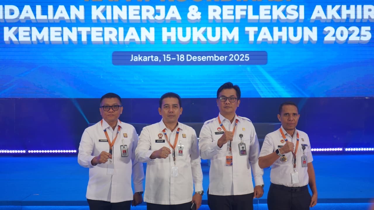 “Berbagai capaian kinerja dan prestasi berhasil diraih Kanwil Kemenkum Malut sepanjang tahun 2025. Di antaranya implementasi reformasi birokrasi, pendirian dan pelayanan 1.185 pos bantuan hukum dan koperasi merah putih, 684 permohonan kekayaan intelektual, 145 harmonisasi ranperda/ranperkada, 144 pelayanan bantuan hukum gratis kepada masyarakat, dan berbagai kinerja berdampak bagi masyarakat lainnya,” ungkap Argap di Grand Marcure Hotel, Jakarta, Rabu (17/12).