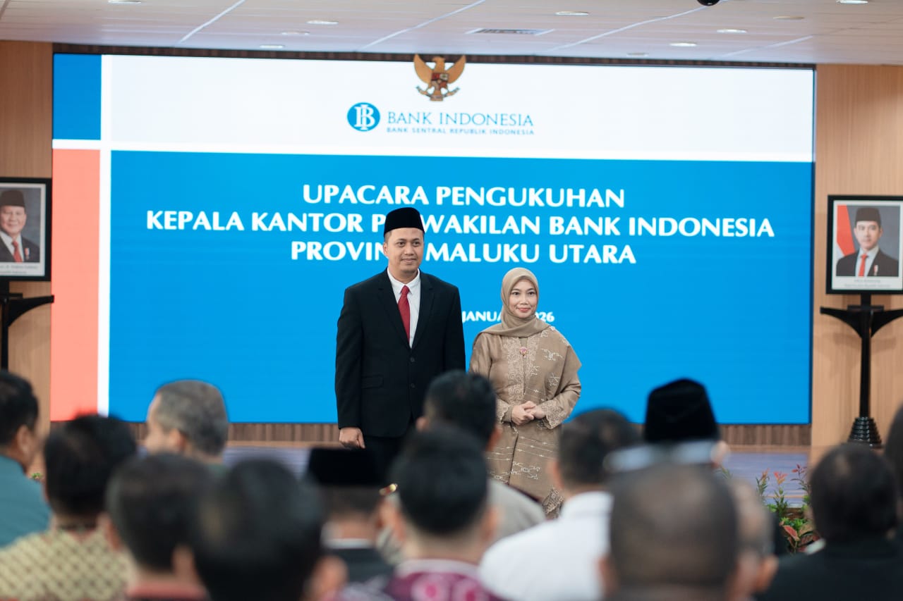 TIDORE – Wali Kota Tidore Kepulauan yang diwakili Asisten Sekda Bidang Administrasi Umum DR. Sofyan Saraha menghadiri pelantikan dan pengukuhan Kepala Kantor Perwakilan Bank Indonesia Provinsi Maluku Utara, di Aula Maitara, Gedung Bank Indonesia, Rabu (14/1/2026).