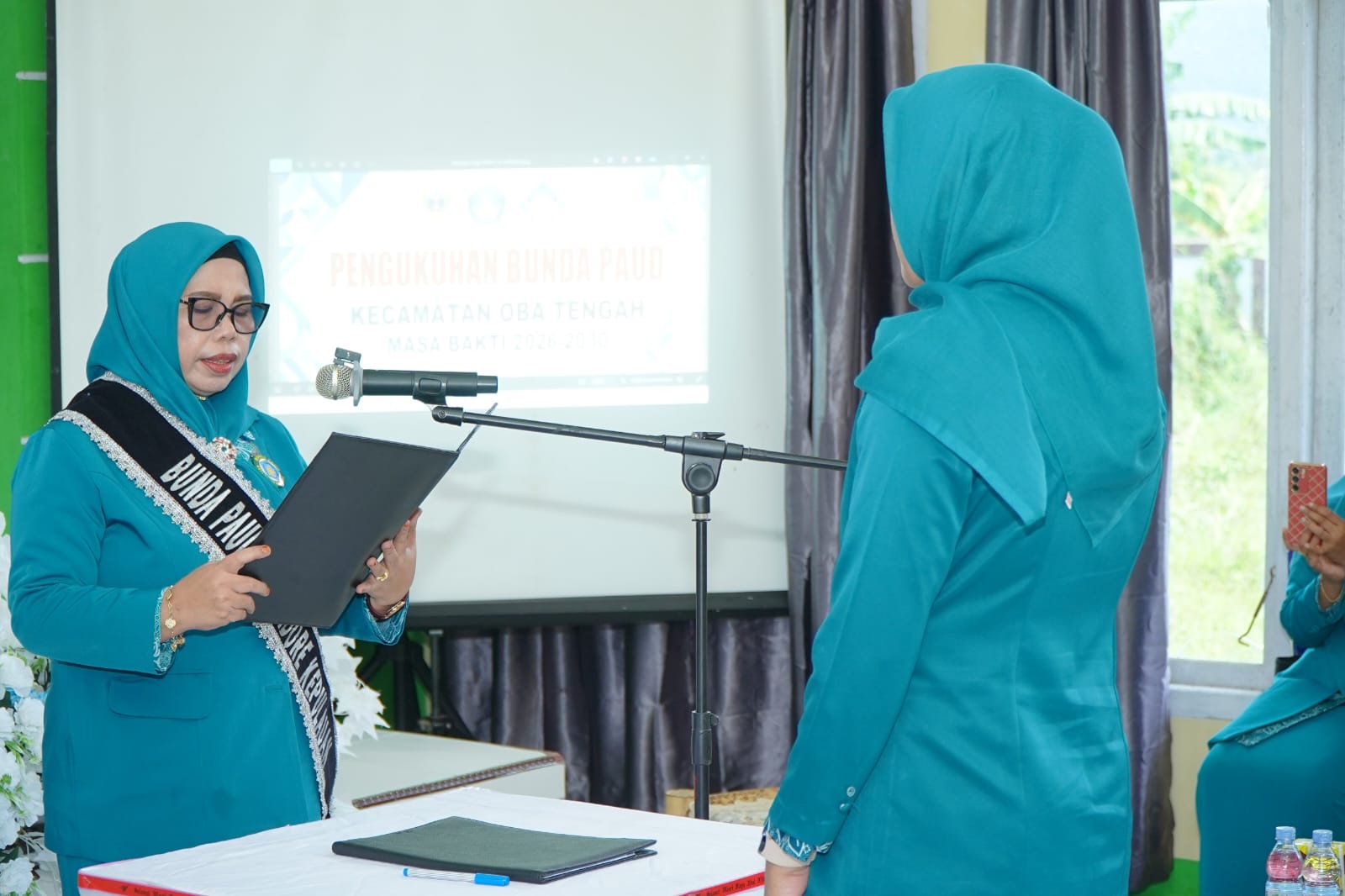 Turut hadir dalam acara pelantikan ini, Ketua I TP PKK Kota Tidore Kepulauan Ny. Sumiyati Ahmad Laiman, Ketua II TP PKK Kota Tidore Ny. Nuraen Ismail Dukomalamo, Ketua IV TP PKK Tidore Ny. Ferawati Abdrahman Arsyad, Forkopimcam Oba Tengah, Pengurus TP PKK Kota Tidore Kepulauan, Pengurus Bunda PAUD Kota Tidore Kepulauan dan TP PKK Kecamatan Oba Tengah. (@b)