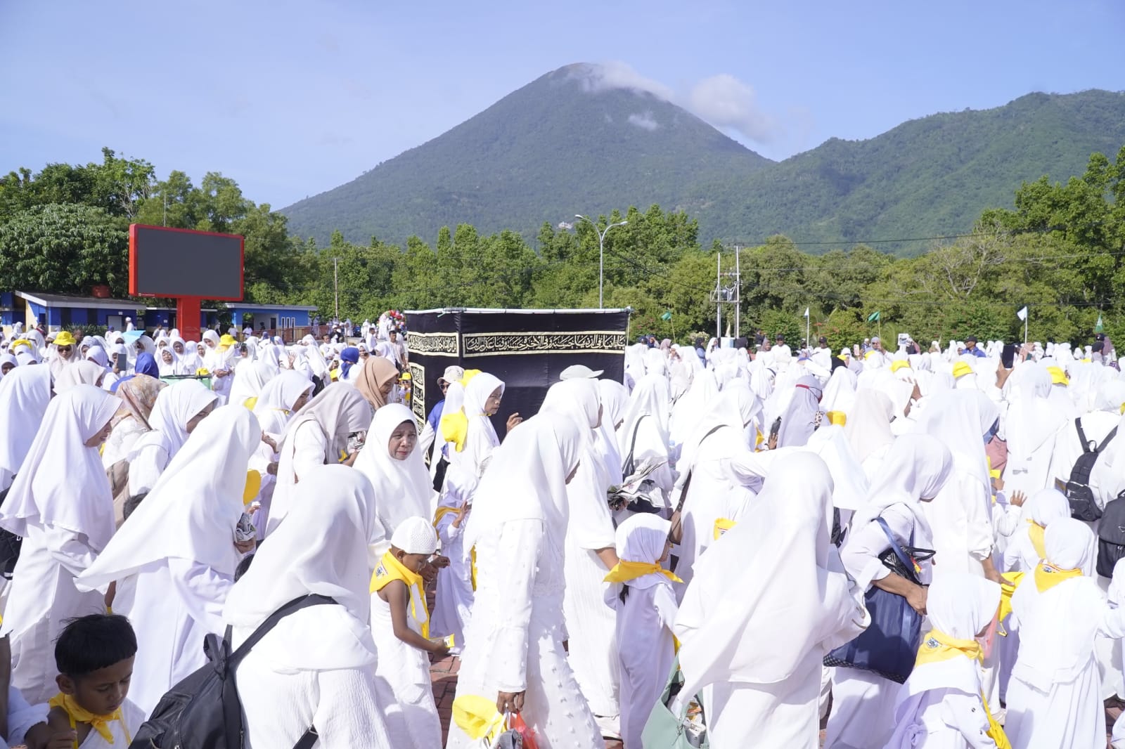 TIDORE – Ribuan peserta yang terdiri dari siswa Pendidikan Anak Usia Dini (PAUD) Taman Kanak (TK), Sekolah Dasar (SD) maupun Madrasah Ibtidaiyah Negeri (MIN) se Pulau Tidore mengikuti kegiatan manasik Haji, yang berlangsung aman lancar dan sukses, di Kawasan Wisata Pantai Tugulufa, Sabtu (24/1/2026).