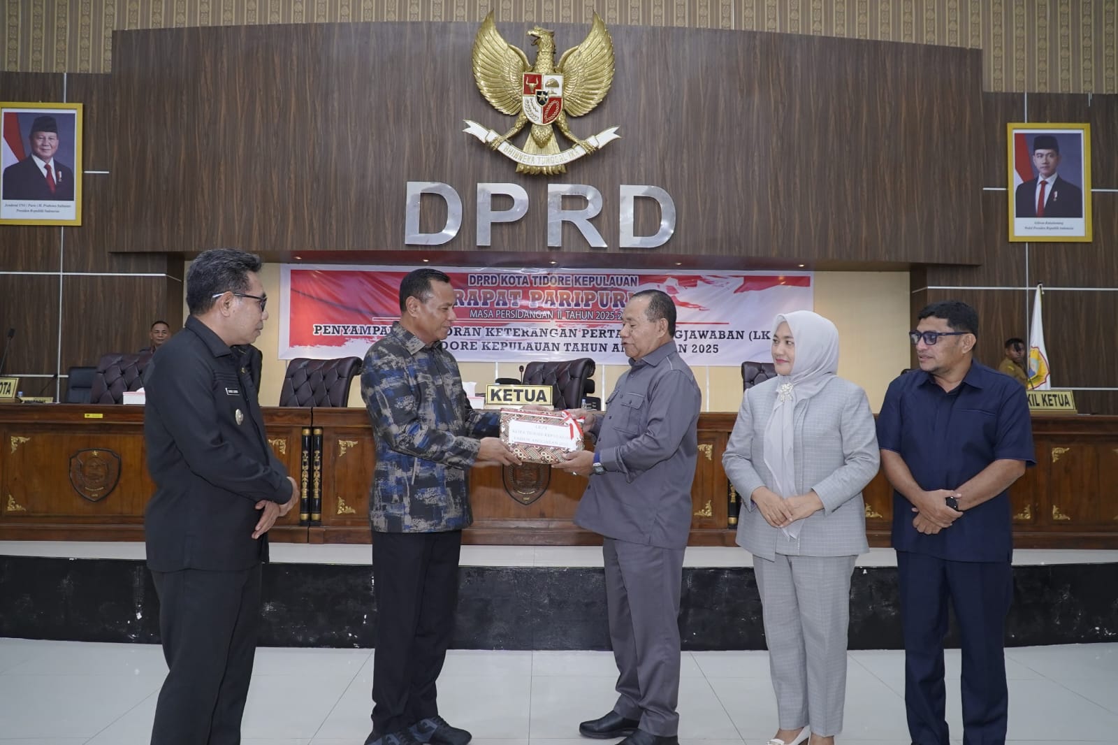 Rapat paripurna ditutup dengan penyerahan dokumen LKPJ Tahun 2025 dari Wali Kota kepada Ketua DPRD Kota Tidore Kepulauan, Ade Kama.