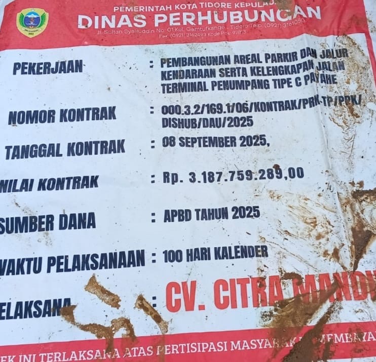 TIDORE — Kepala Dinas Perhubungan (Kadishub) Kota Tidore Kepulauan, Marsaid Idris, menegaskan bahwa pekerjaan proyek timbunan Terminal Tipe C Payahe telah diselesaikan sesuai dengan kontrak yang ditetapkan.