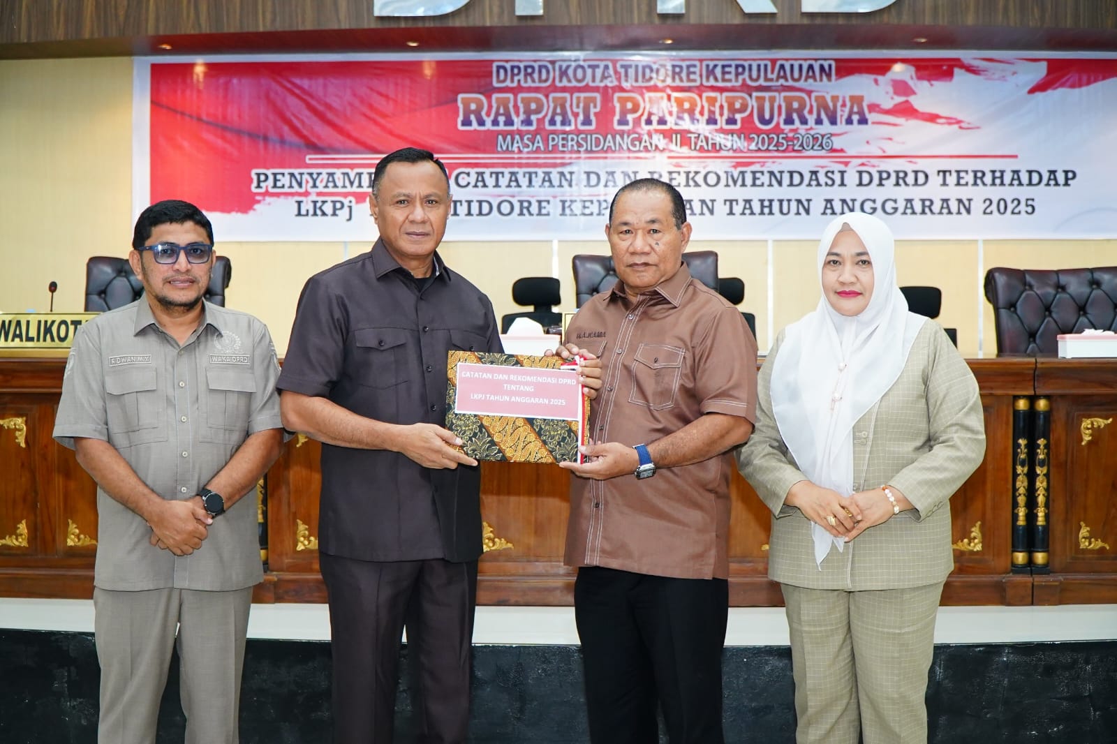 Rapat paripurna dipimpin Ketua DPRD Kota Tidore Kepulauan H. Ade Kama,dan dihadiri 19 dari 25 Anggota DPRD Kota Tidore Kepulaun, Forkopimda Kota Tidore Kepulauan, para Asisten, Staf Ahli, serta para Pimpinan OPD.